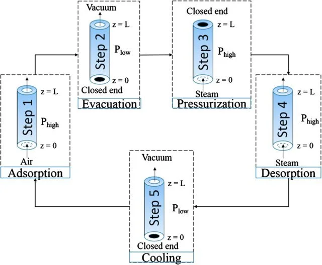 Following the down-select matrix we decided to use hybrid MOFs for our process specifically mmen-Mg2(dobpdc) . We proposed a five-step Temperature-Vacuum Swing Adsorption (TVSA) for the carbon capture process. We also decided to use underground injection for carbon capture due to energy efficiency.